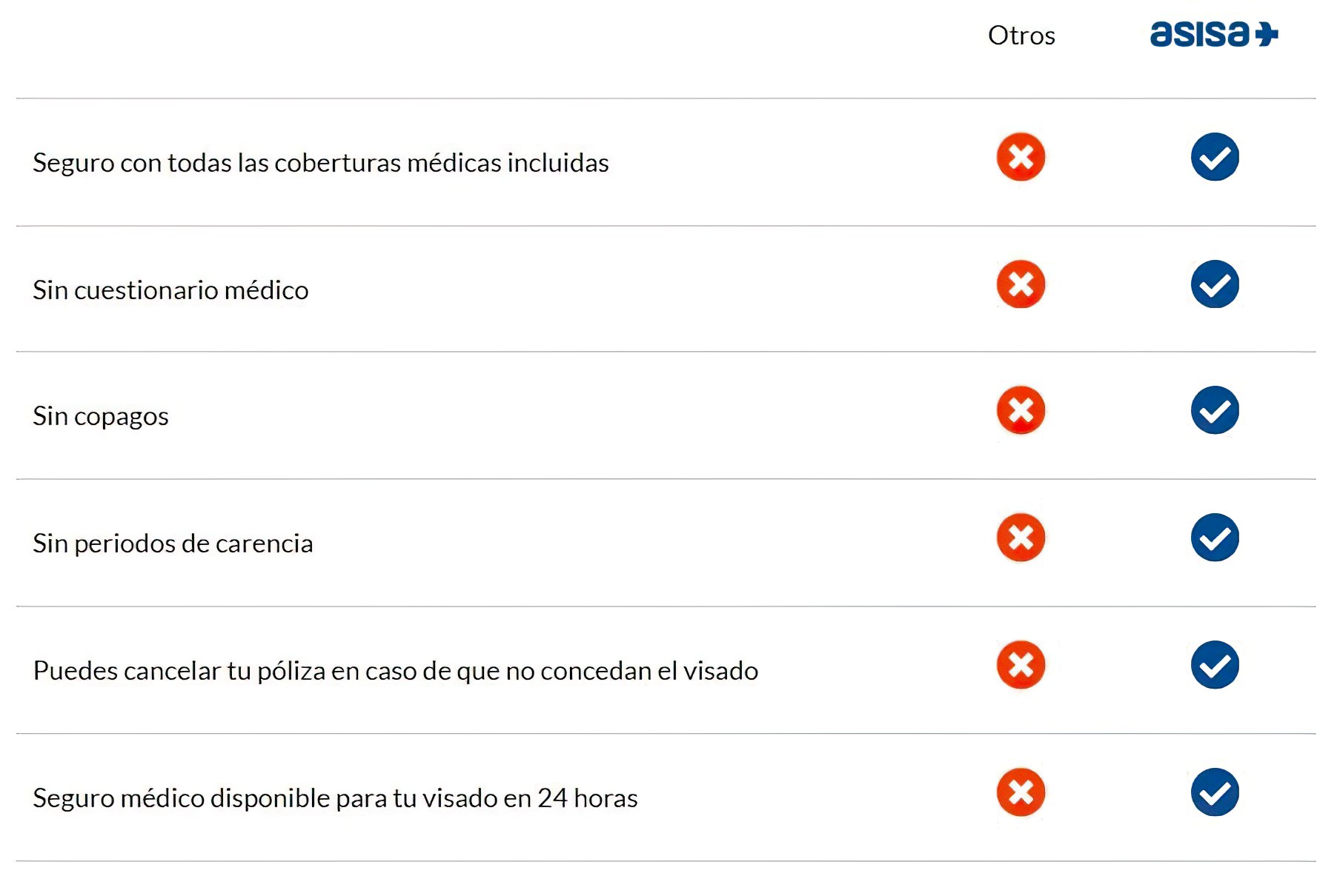 Seguro médico para estudiantes extranjeros en España más completo, que son: